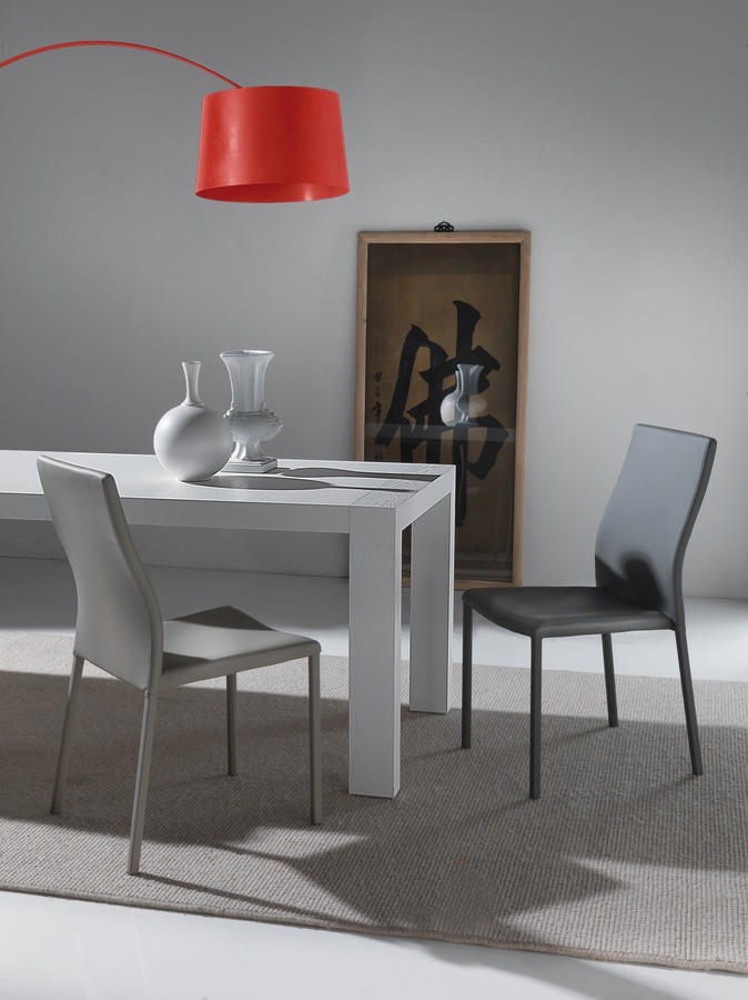 Pieds en acier re-rembourrés avec ecoleather (taupe clair et gris titane) ou laqué (blanc et noir)