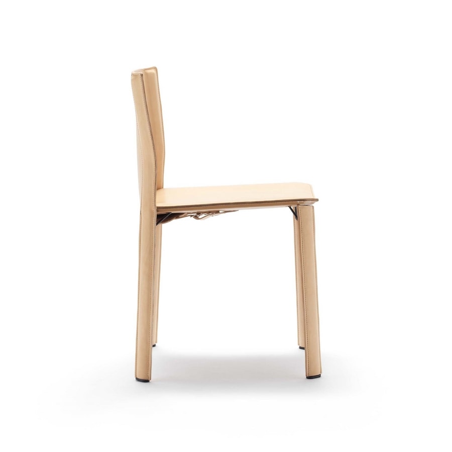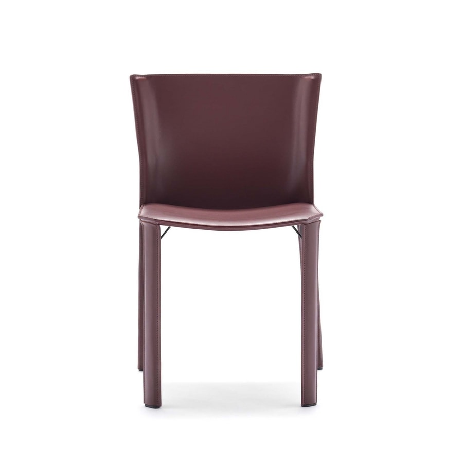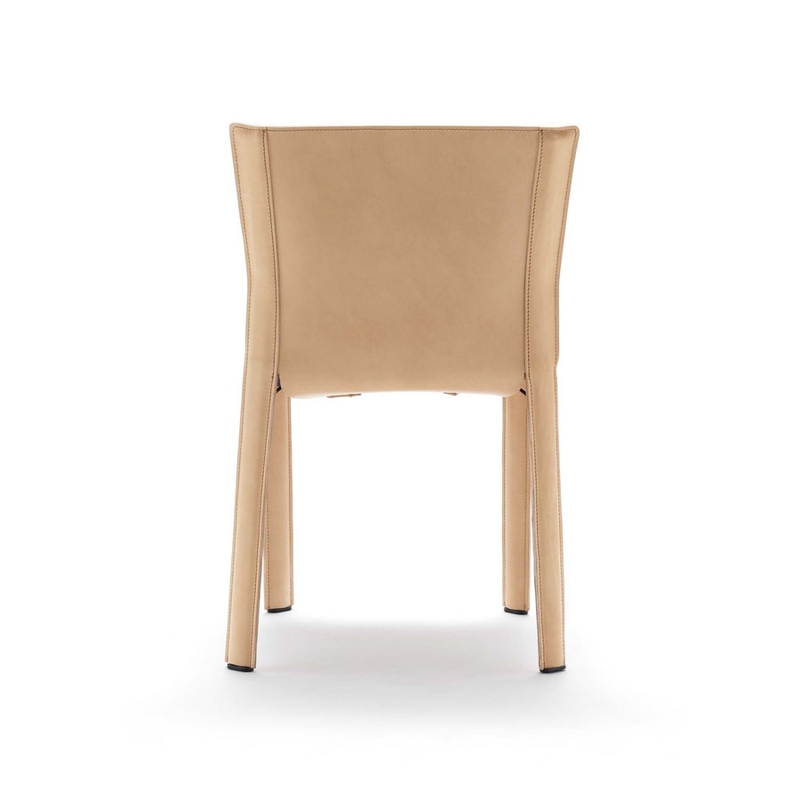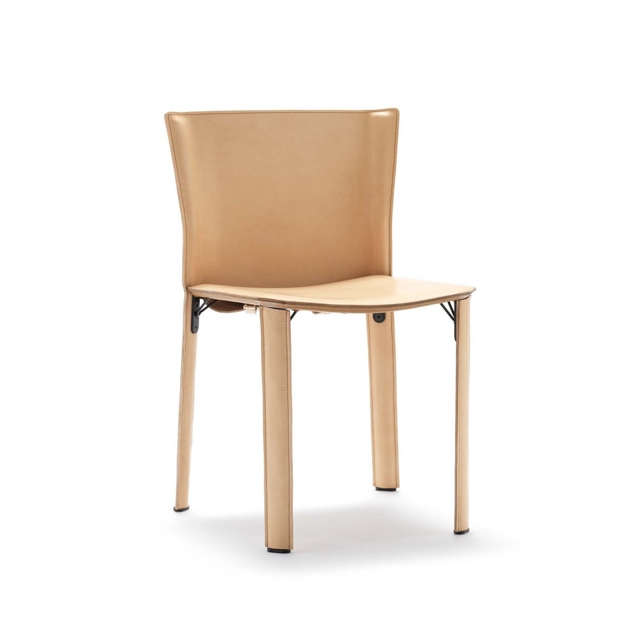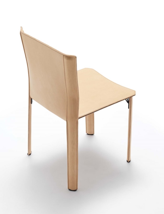 Il semble suspendu dans le temps. La chaise en cuir total où le cuir de peau montre tout son attrait de matérialité avec une élégance intemporelle. L'assise généreuse et les pieds fermement posés sur le sol transmettent la solidité et la substance d'un produit fait pour durer longtemps.