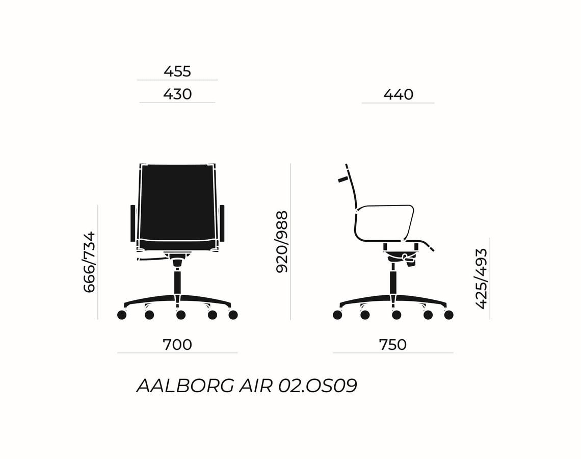 La structure en acier tubulaire et la maille technique proposées en noir et blanc renforcent le concept minimaliste du design original. Une évolution esthétique et fonctionnelle qui reflète le grand dynamisme du travail et rend l'Aalborg Air plus actuelle que jamais en termes de style et de confort.