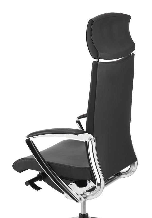 Optional: accoudoirs en acier inoxydable polis, support dossier et pietement en aluminium poli, support lombaire réglable, regulation profondeur assise, retour automatique AGR.