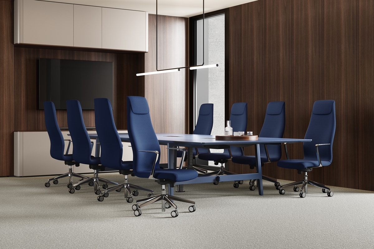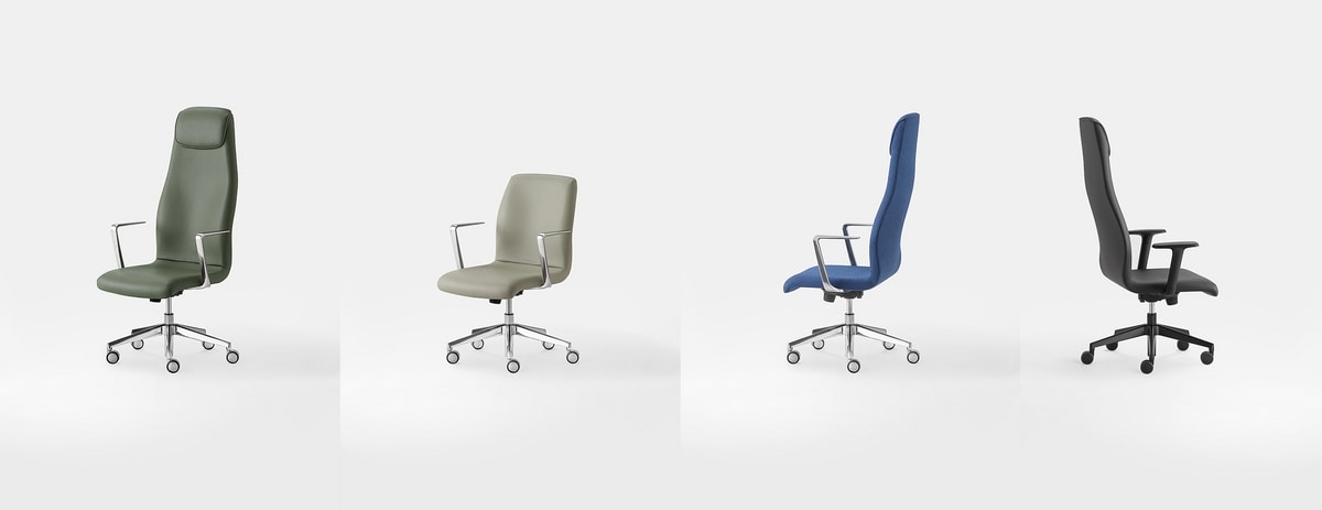 Disponible avec différentes options de mécanismes et d'accoudoirs, et revêtu de tissus texturés et vibrants, Kaoma caresse le regard et offre un confort discret, idéal pour de longues heures de travail créatif ou de prises de décisions stratégiques.