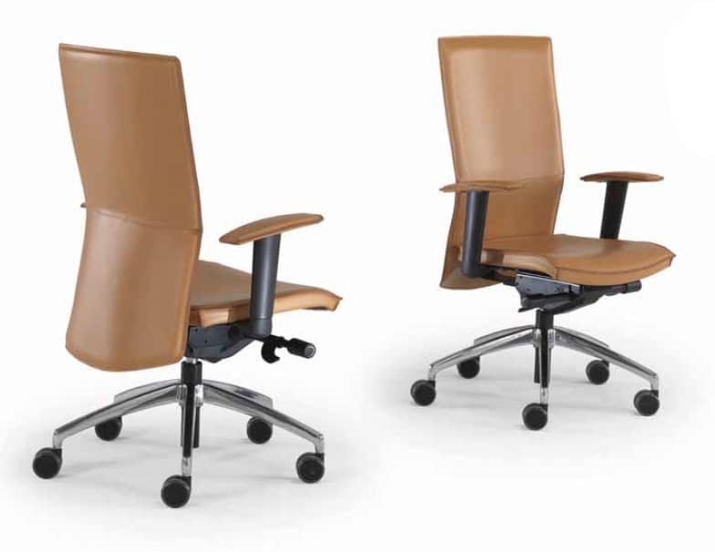 Chaise de bureau avec rembourrage en cuir. Accoudoirs en métal. Equipé d'ajustements ergonomiques. Hauteur fixe.