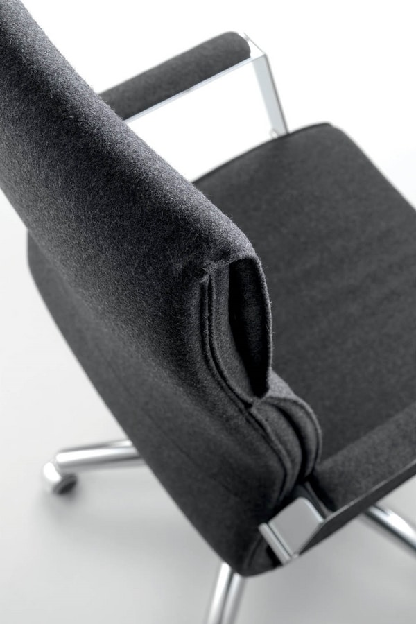 Chaise de bureau exécutif avec dossier haut, élégant et essentiel. Avec un mécanisme multibloc. Disponible en différentes couleurs. Base pivotante en aluminium chromé et coque rembourrée en bois. Made in design italien avec un style minimaliste.
