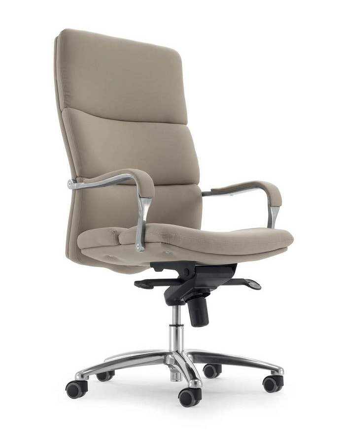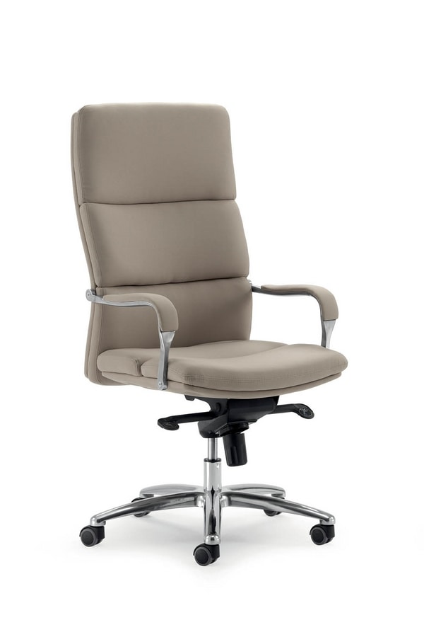 Directional chaise de bureau avec dossier haut et accoudoirs rembourrés, doux et confortable. Equipé de mécanisme de multibloc et divers ajustements, base pivotante en aluminium avec des roues. Siège ergonomique, fabriqué en Italie.