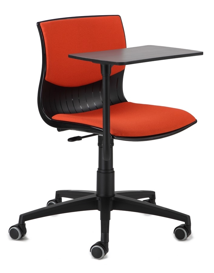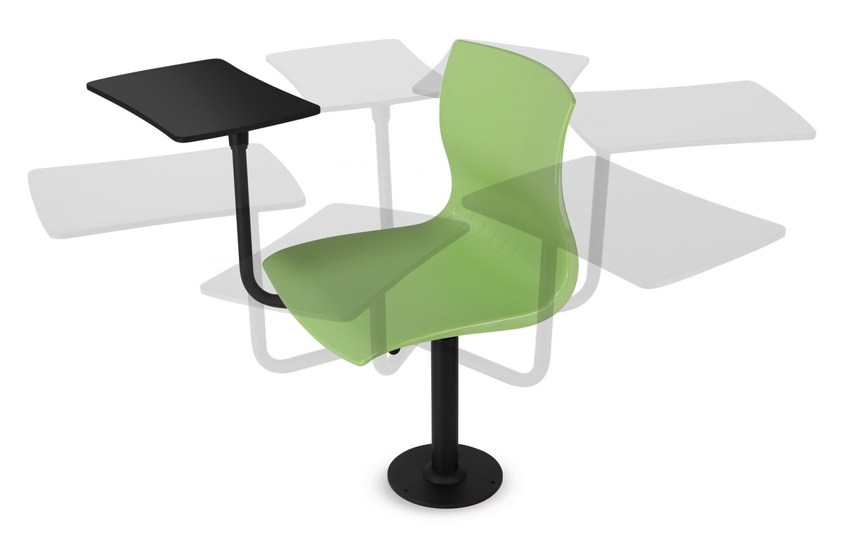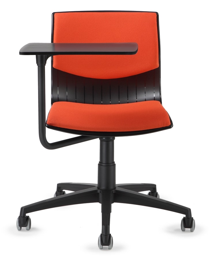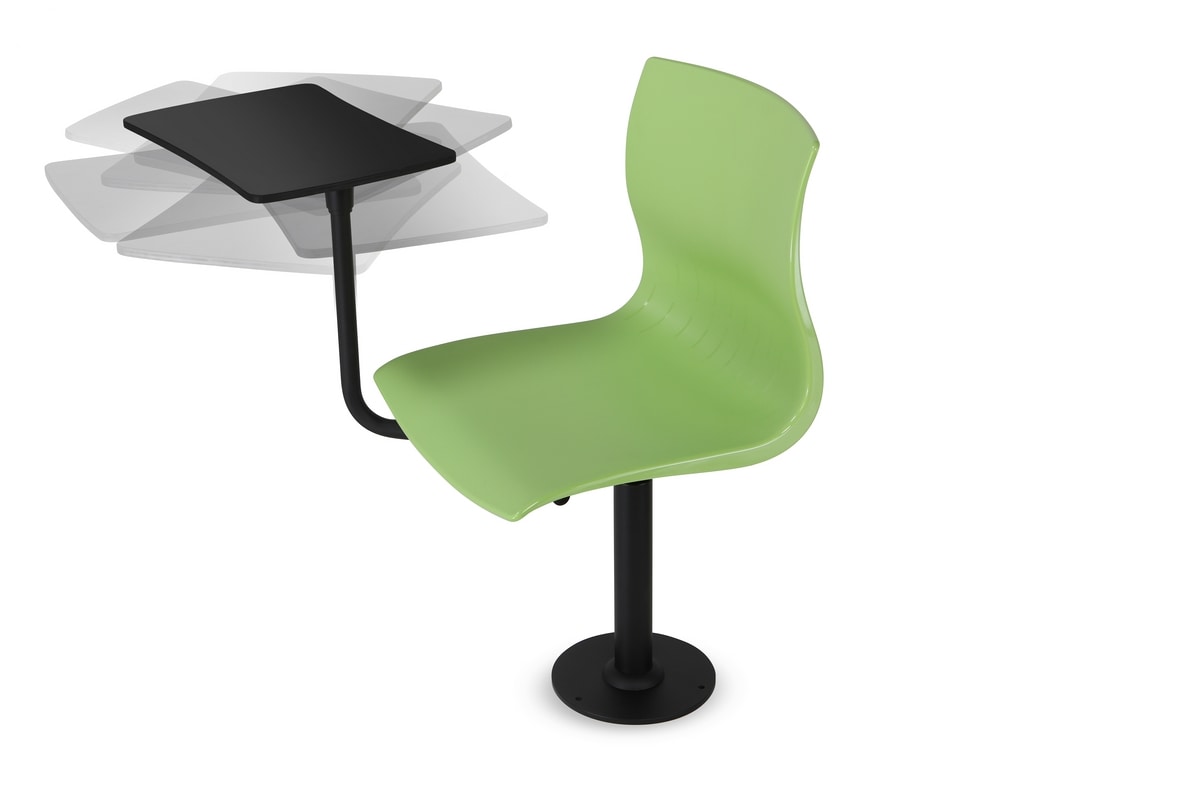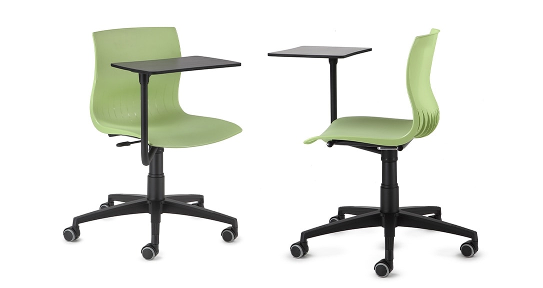 También están disponibles las versiones con deslizador antideslizante o tableta de escritura giratoria de 4 patas con ajuste de gas con tableta orbital. Versiones giratorias con 4 patas cónicas en aluminio pintado blanco o negro o cepillado y pulido con ruedas o pies. Modelos giratorios con retorno automático o con elevación de gas, sobre una base de vidrio cromado también en versión de taburete con reposapiés.