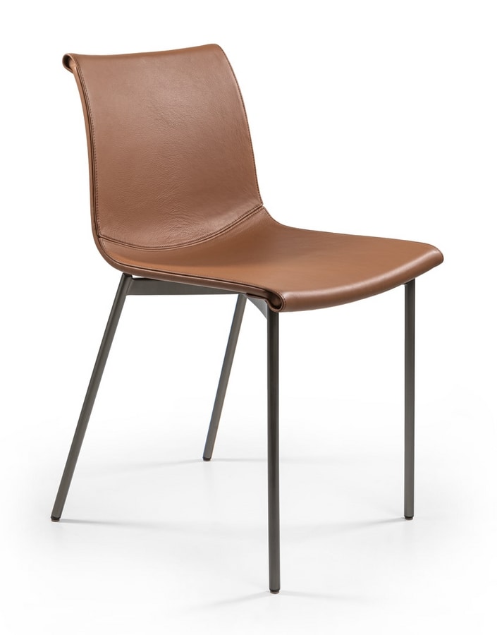 Chaise en métal avec revêtement en cuir