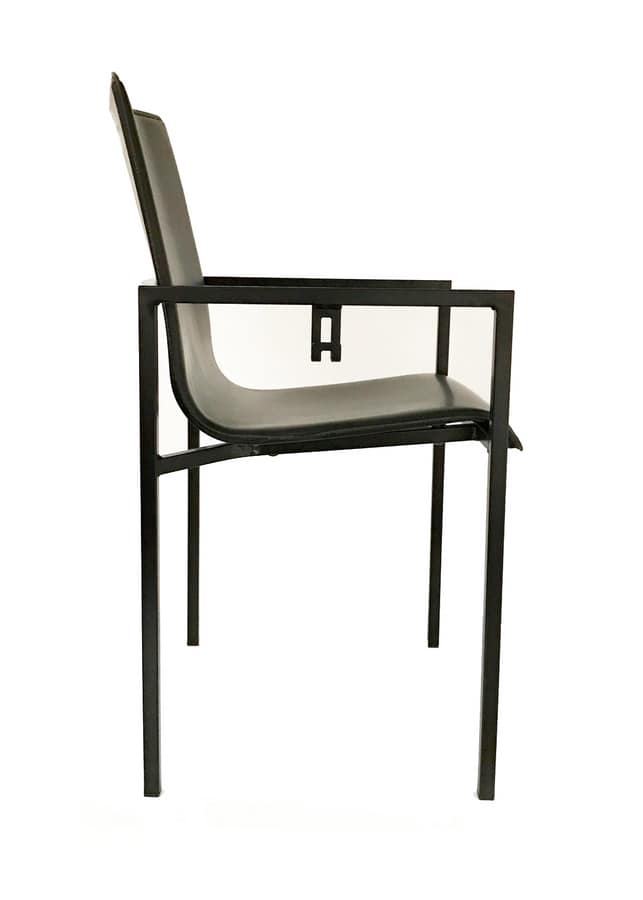 Chaise avec cadre en acier peint, avec support de sac latéral. La coque est rembourrée et recouverte de cuir véritable. Idela pour les salons de restaurant modernes ou "Industrial Style". Il peut être peint avec un choix de couleurs afin que vous puissiez l'adapter à la salle à manger ou à l'environnement dans lequel il sera inséré.