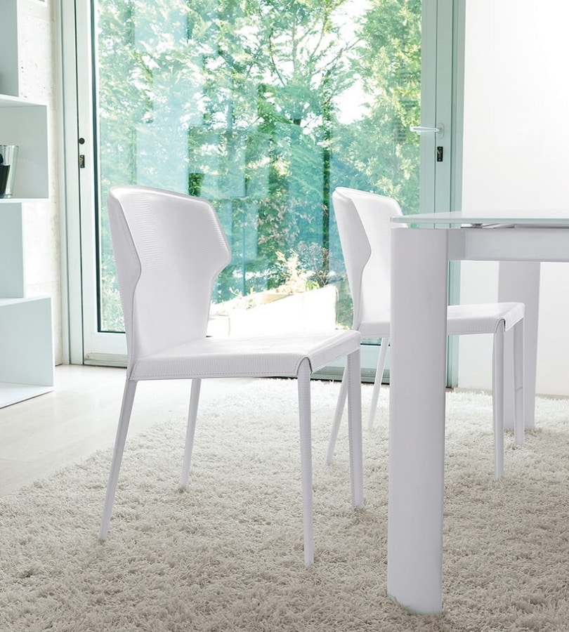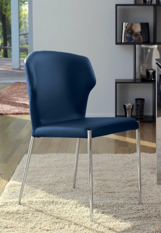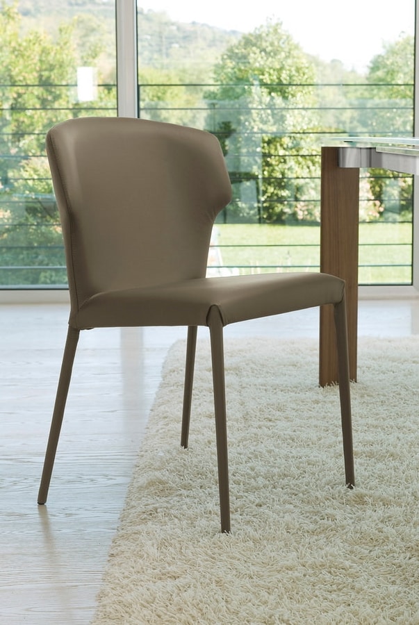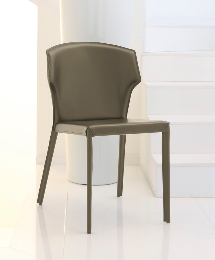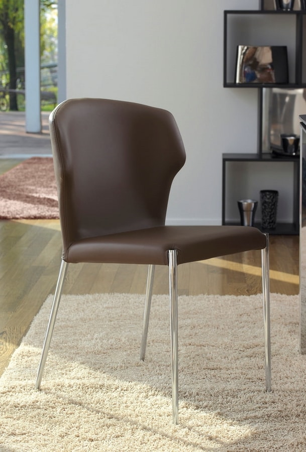 Chaise, structure en acier, assise et dossier recouverts de cuir, cuir véritable, cuir ou éco-cuir. Les pieds peuvent être en acier chromé, peint ou entièrement revêtu.