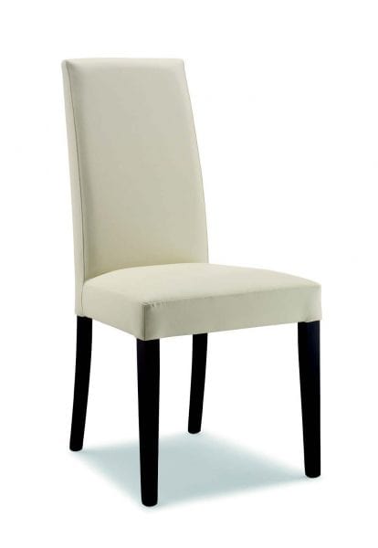 Chaise rembourrée pour les restaurants, les hôtels et les salles à manger. Jambes en hêtre. Haut dossier. Tapisserie d'ameublement en tissu ou en coton écru.