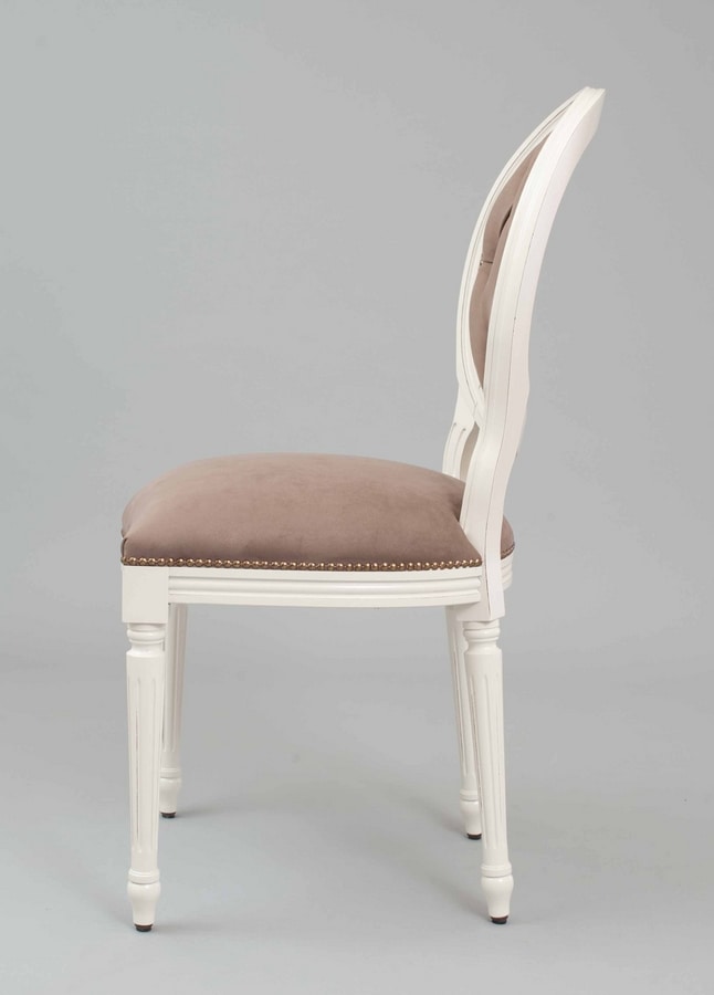 Structure en hêtre laqué blanc, rembourrée en éco-cuir Nabuk.