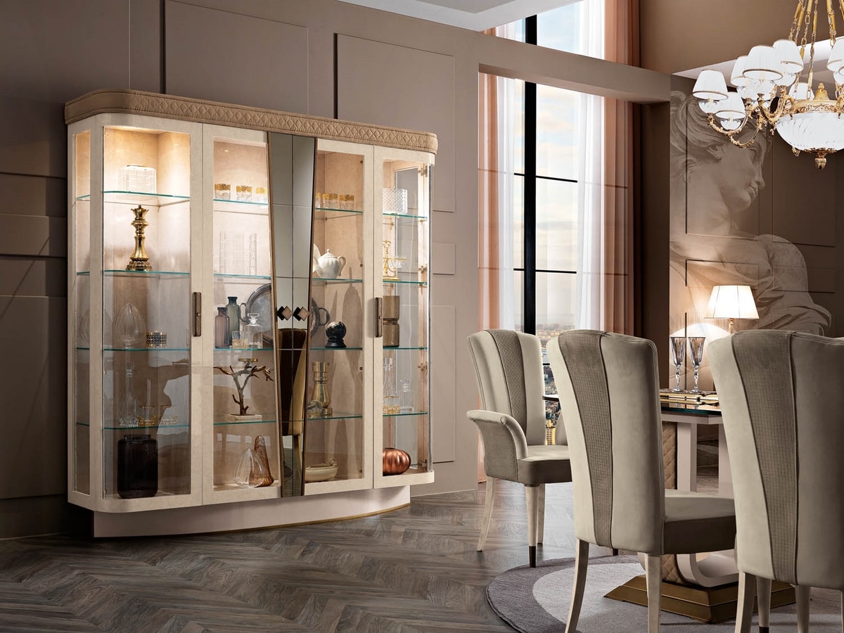 La nouvelle collection Diamond de Mobilpiù Luxury confirme sa capacité exclusive à meubler les espaces de vie, de restauration et de nuit de manière complète, pleine d'élégance et de prestige. Les suggestions, les atmosphères fascinantes et la créativité du design italien et des matériaux employés sont combinés avec les nouvelles technologies et se mélangent, créant une véritable magie de forme et de couleurs.