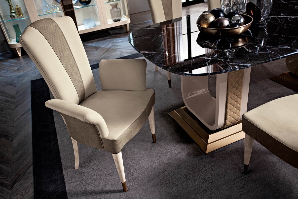 Chaise avec et sans accoudoirs. Structure en bois entièrement couverte.