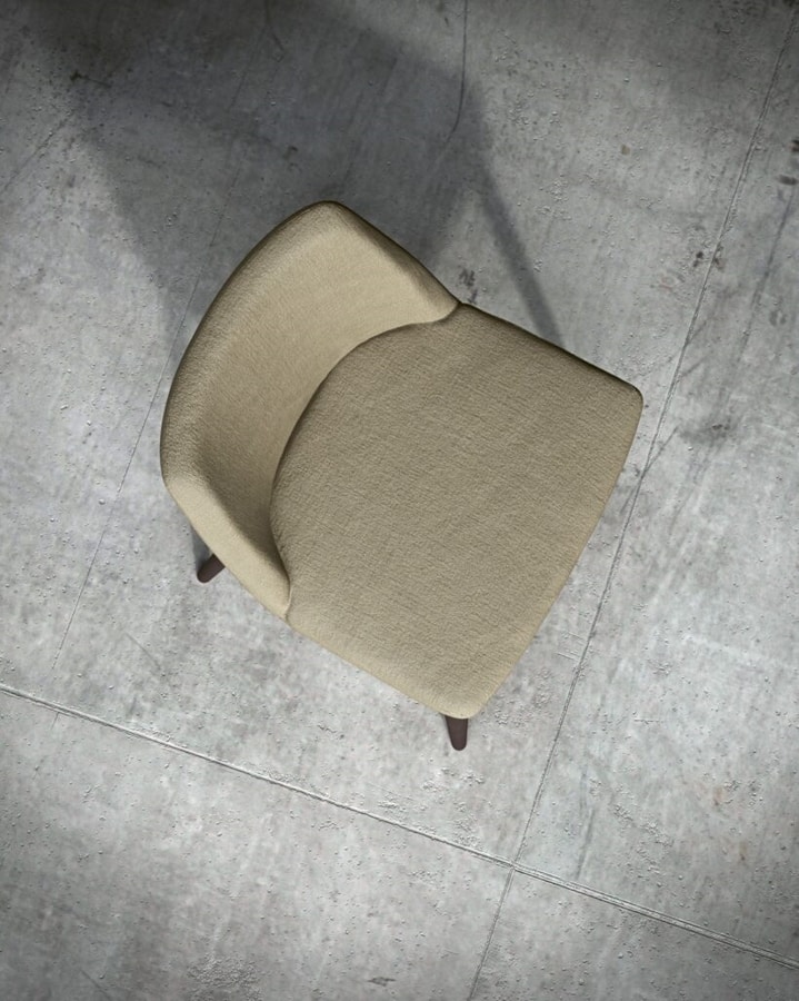 La forme particulière du dossier est conçue non seulement pour soutenir, mais aussi pour envelopper et épouser les formes.