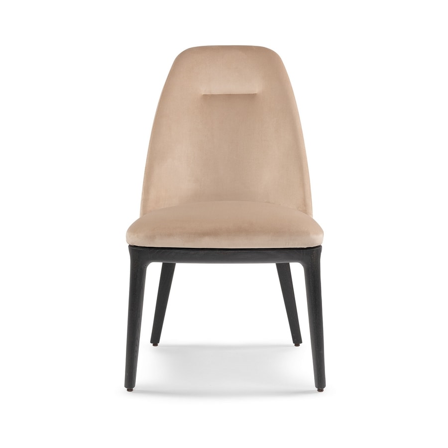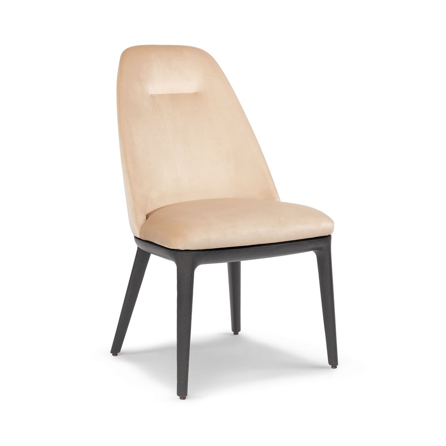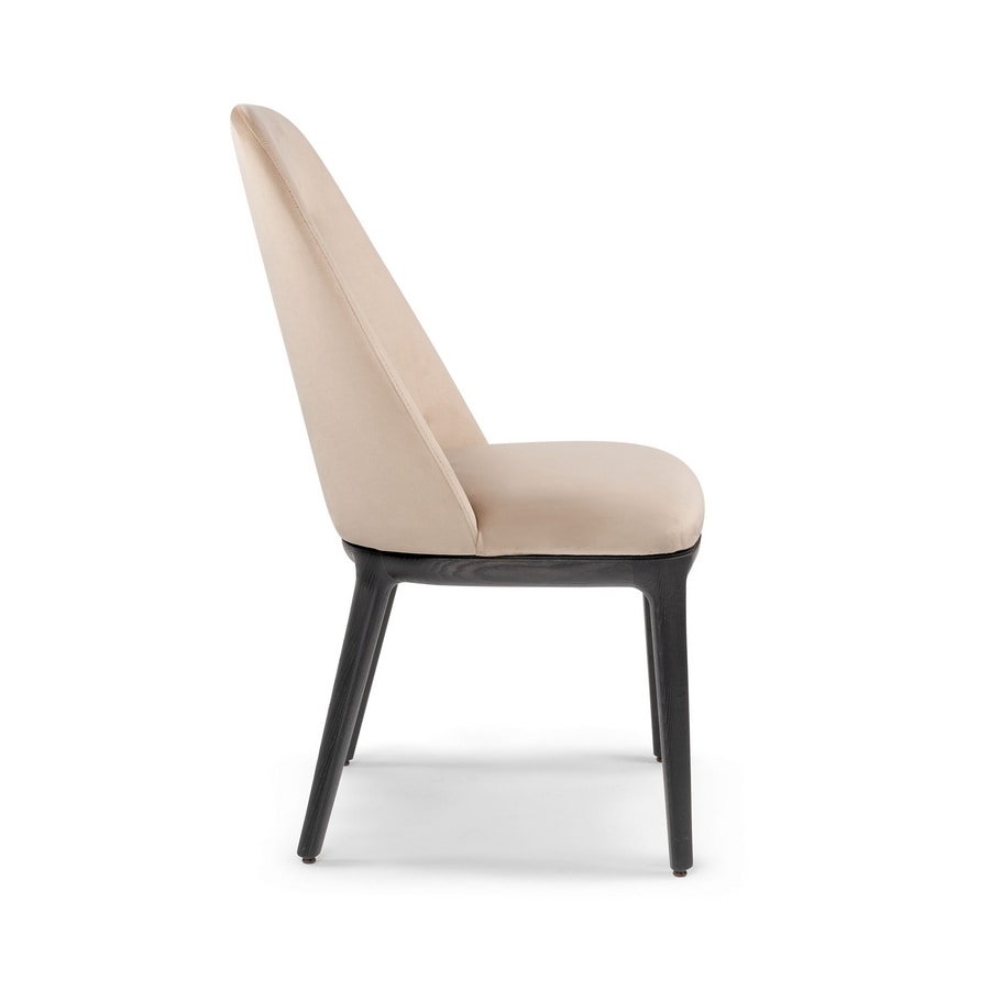 Chaise rembourrée avec un design sinueux, avec des jambes en bois