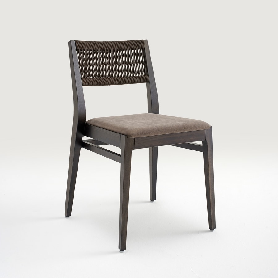 Chaise empilable. La collection Marina mélange le confort, le design et l'artisanat en parfaite harmonie entre la tradition et l'innovation. Avec une corde nautique tissée à la main et un cadre en bois de cendre solide, chaque pièce ajoute une touche d'authenticité raffinée aux espaces résidentiels et contractuels.
