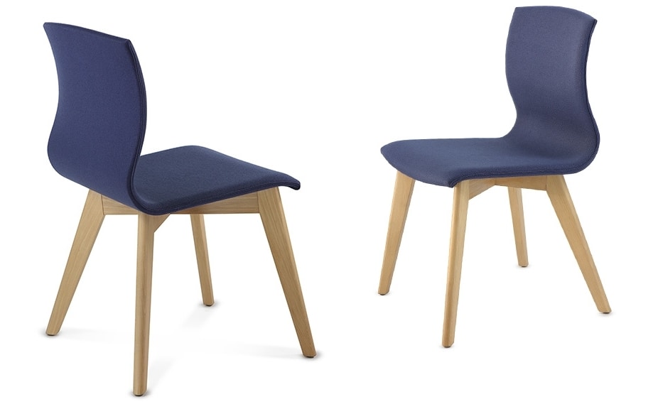 Sièges monocoques en bois de hêtre multicouche ou avec parties rembourrées et rembourrés en différentes versions. Structure à 4 pieds en bois de hêtre massif.