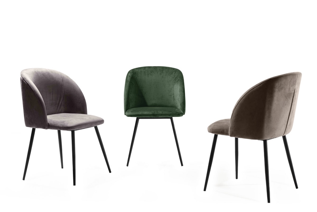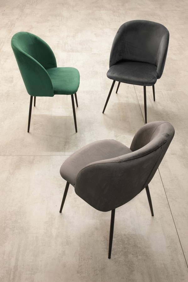 Chaise en métal, revêtement en velours