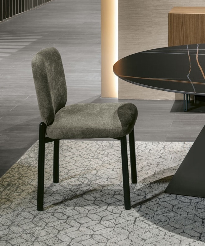 Chaise avec structure en métal peint et assise et dossier rembourrés, revêtus de tissu doux Mellow Blend.