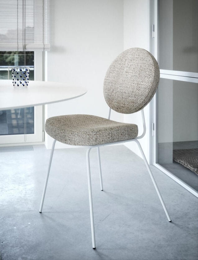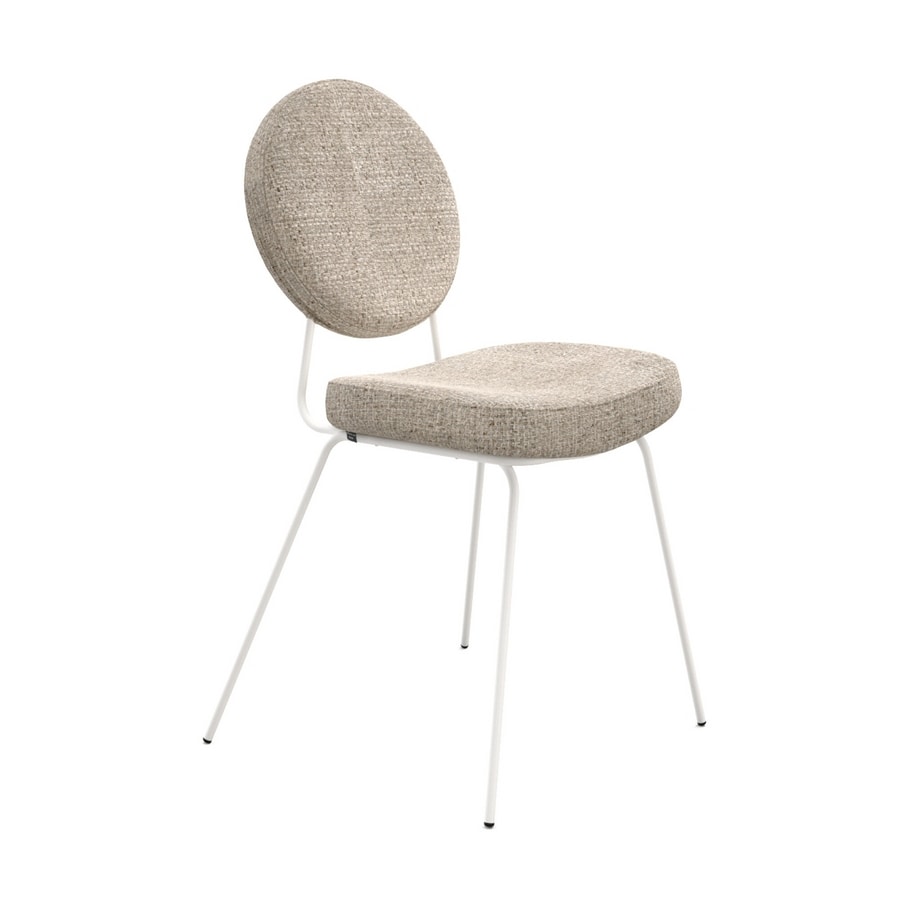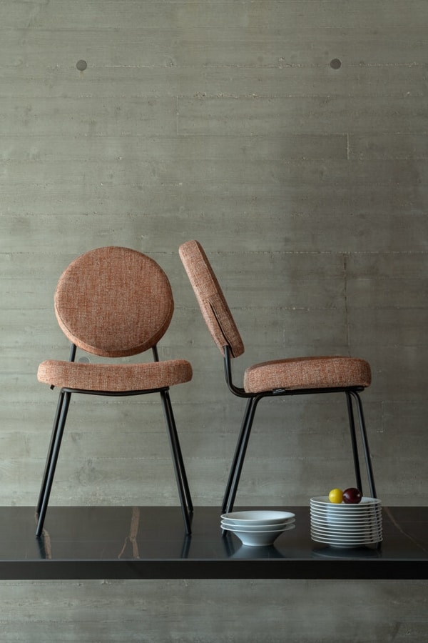 Chaise en métal, avec dossier rond rembourré