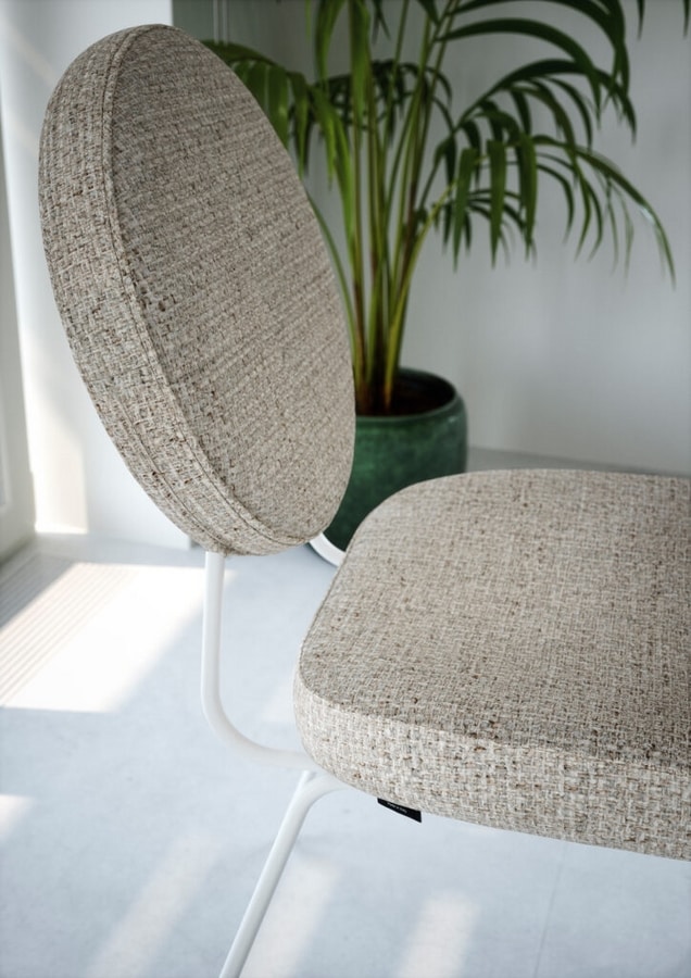 Chaise avec structure en métal, noire ou blanche, avec assise large et confortable. Possibilité de personnaliser le revêtement.