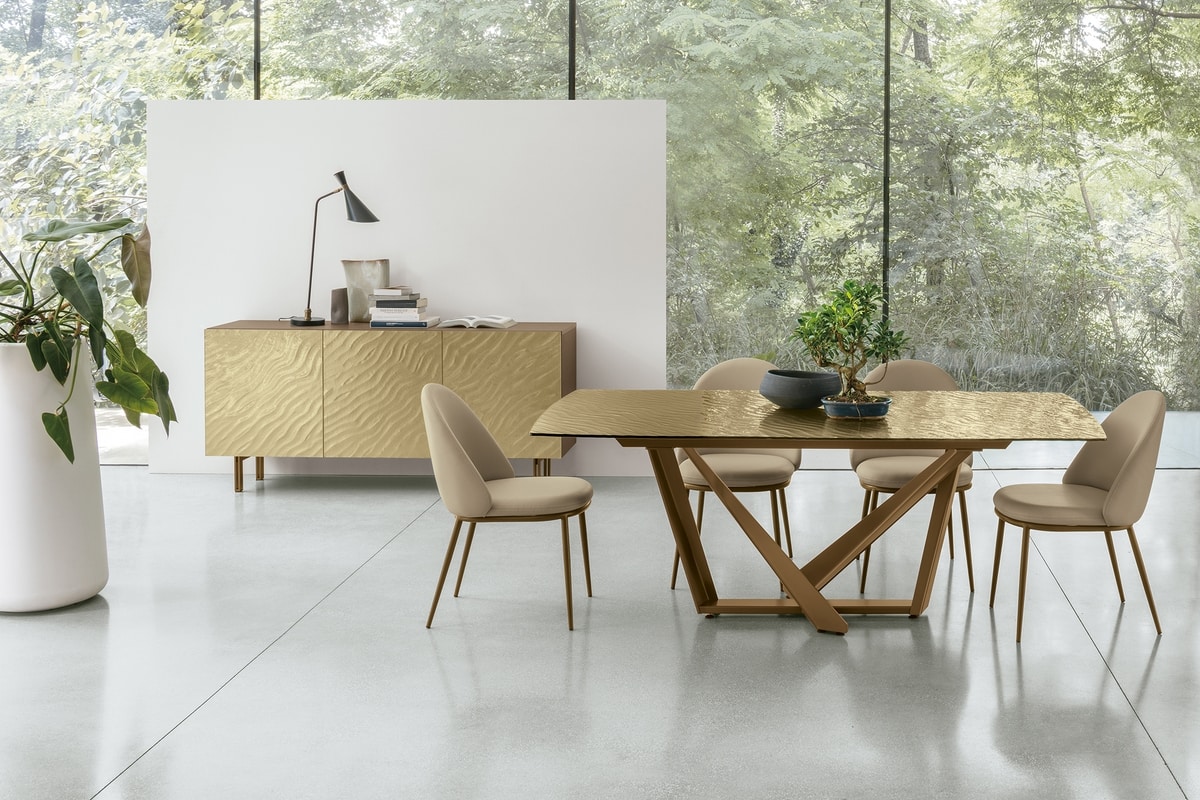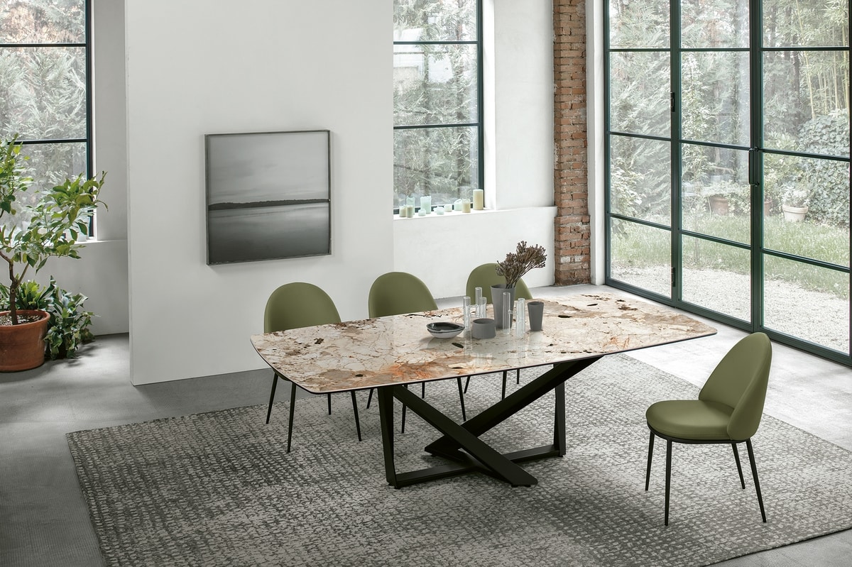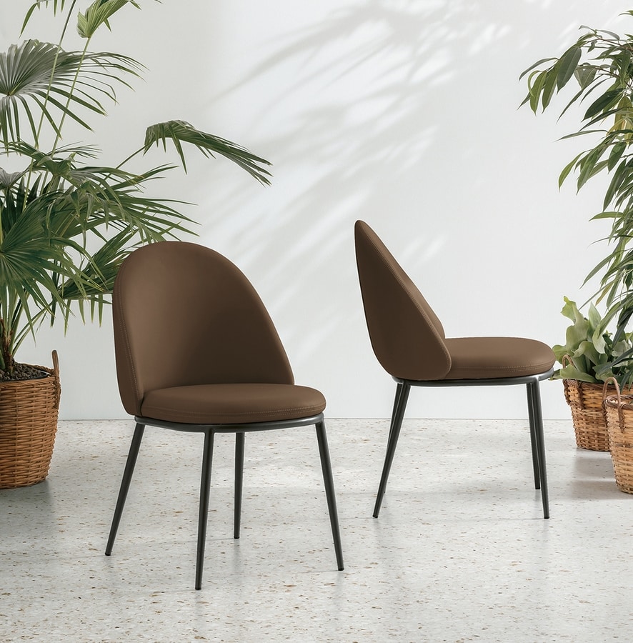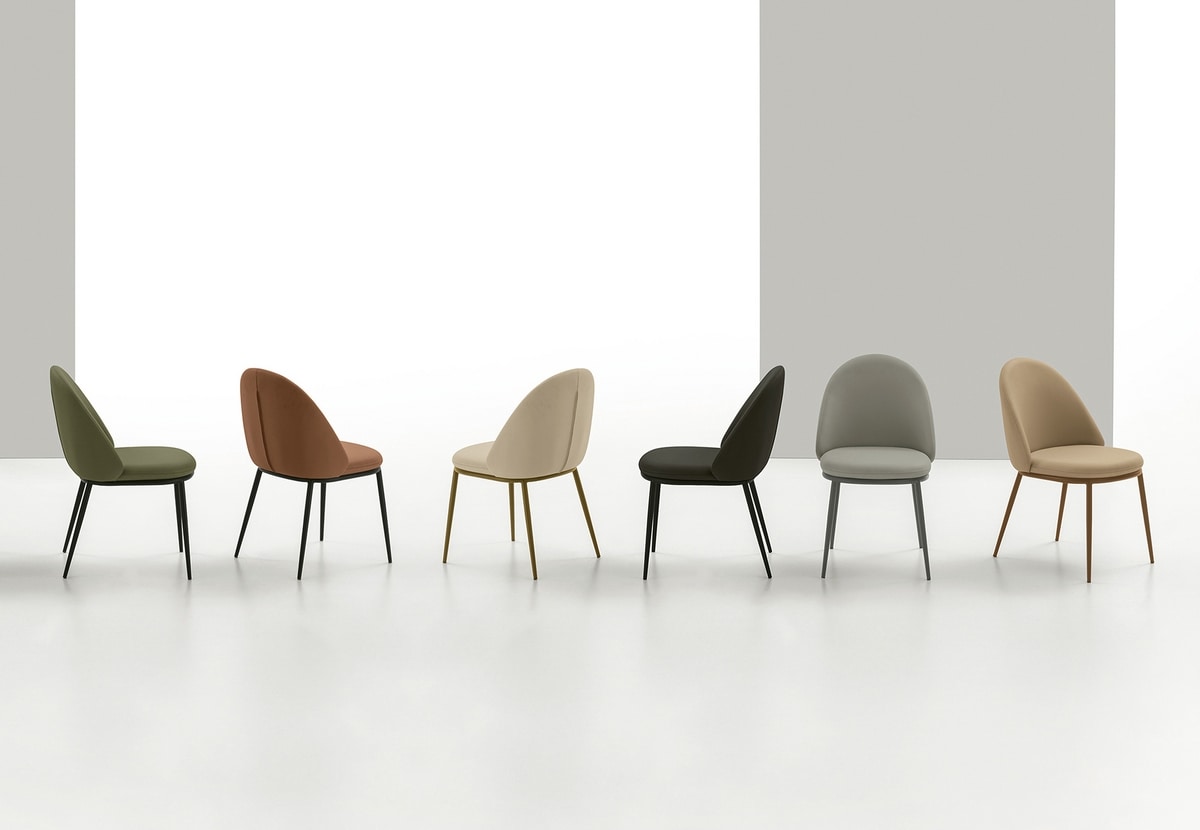 Chaise avec structure métallique peinte et siège rembourré et dos recouvert de tissu doux et facile.