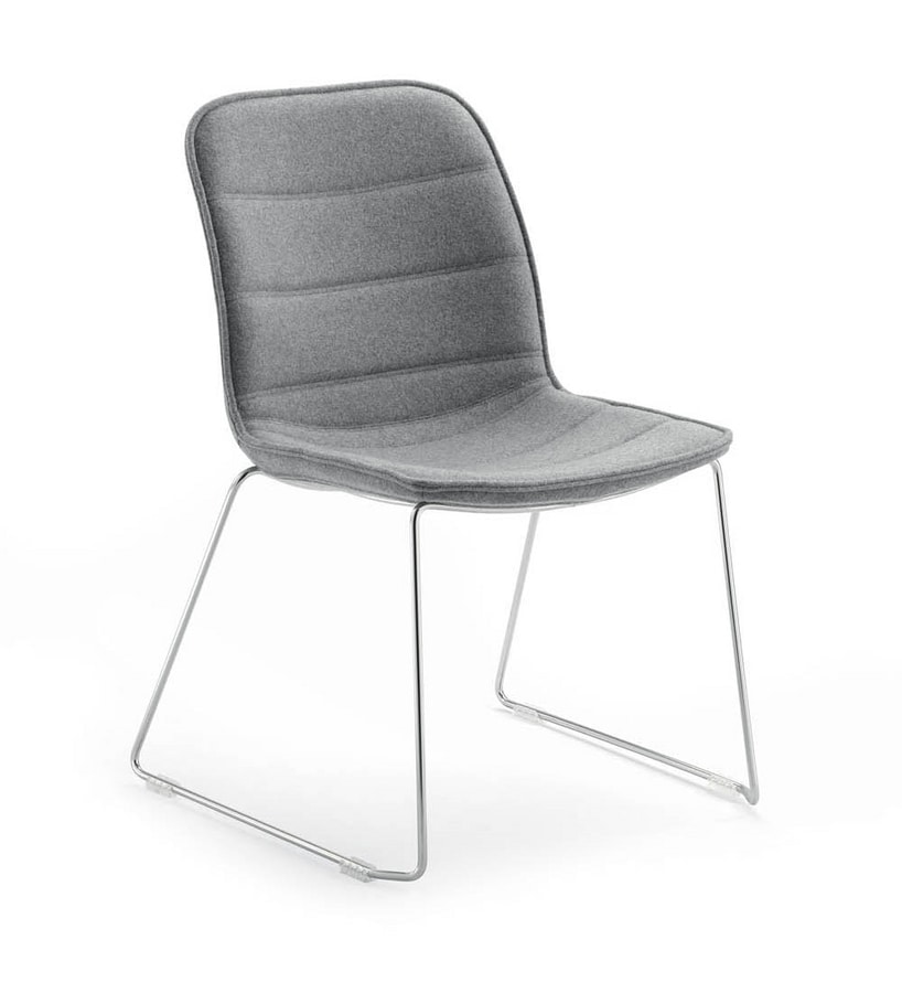 Chaise d'attente avec assise et dossier rembourrés. Piètement luge en acier.