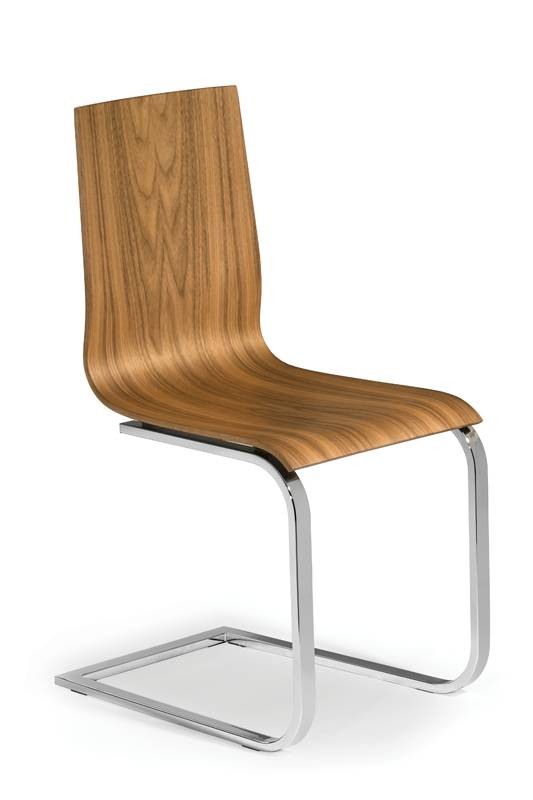 Chaise avec luge en acier chromé et doit, de revêtement et de finition bois rembourré ou en bois sur demande.
