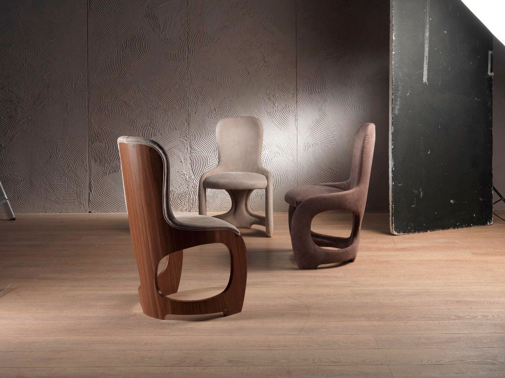 Chaise qui est une expression de l'élégance avec ses lignes courbes sinueuses, et offre un grand confort grâce à sa forme embrassant et la douceur des matériaux utilisés (disponibles en différents types de cuir). Conception et virtuosité structurelle, fabriqué à partir d'un seul morceau de bois multicouche incurvé. Disponible à la fois entièrement capitonné (article code SE48) et avec le président dos plaqué en noyer noir (SE49); son polyvalence signifie qu'il peut être utilisé dans une variété de contextes de conception.