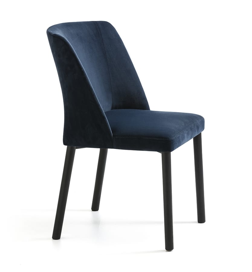 Le dossier rembourré, disponible en deux huit, est enveloppant. Les chaises et tabourets Virginia garantissent confort, force et espace minimal.