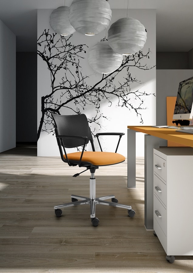 Chaise de bureau sur roulettes avec base chromée