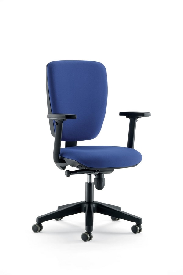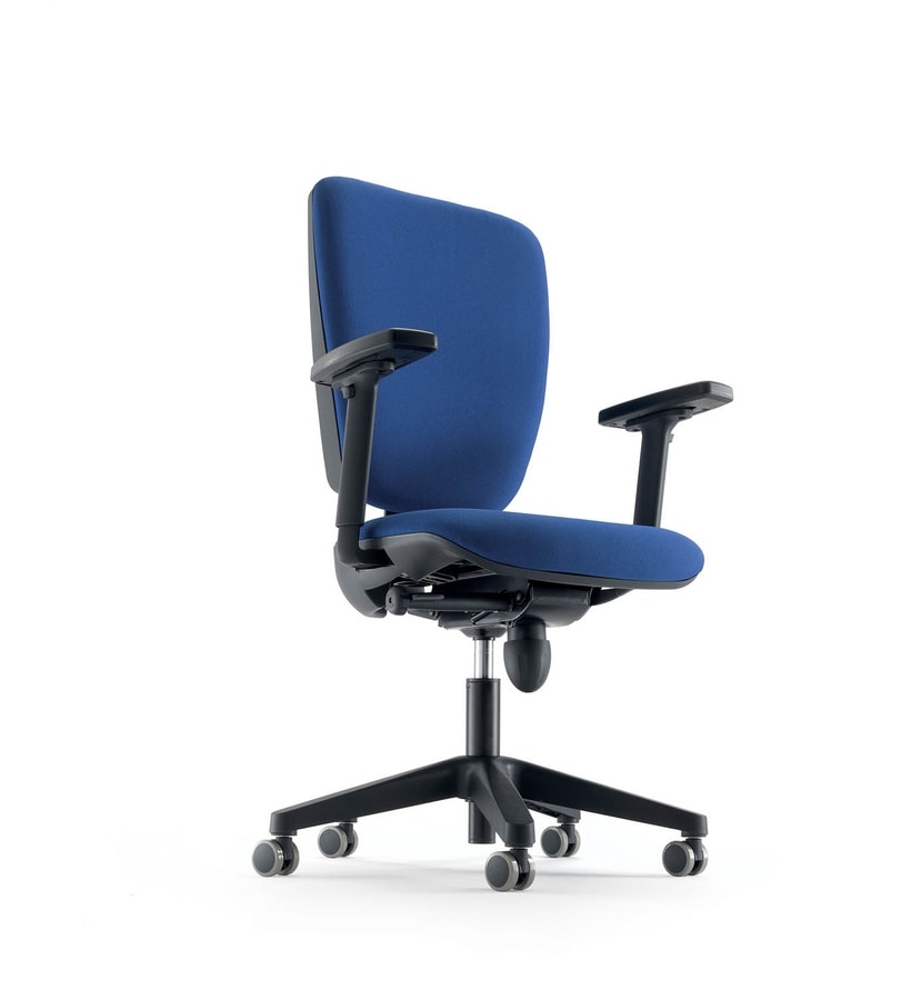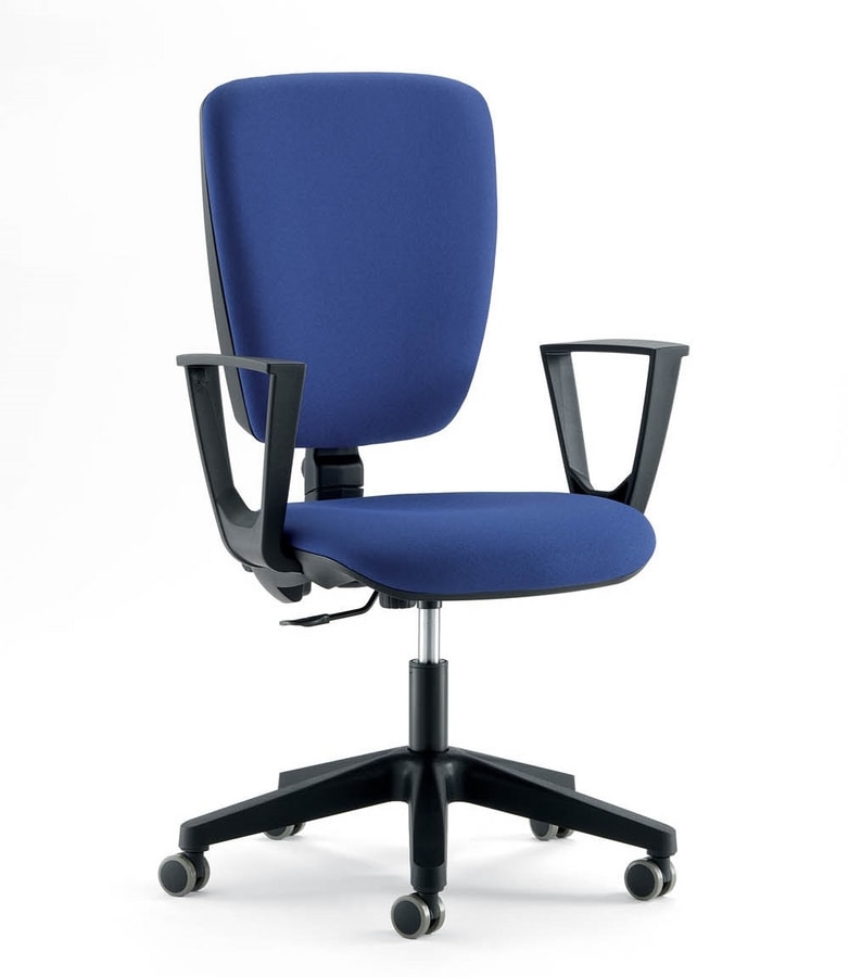 Siège opératif de bureau, avec accoudoirs disponibles en différentes versions. Assise et dossier rembourrés.
