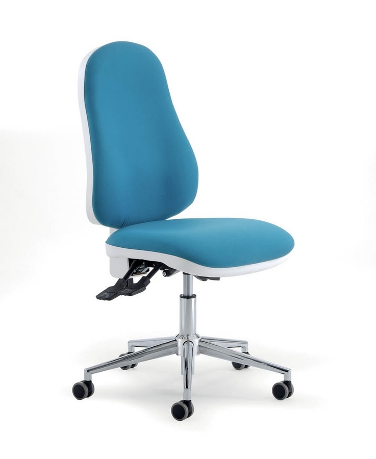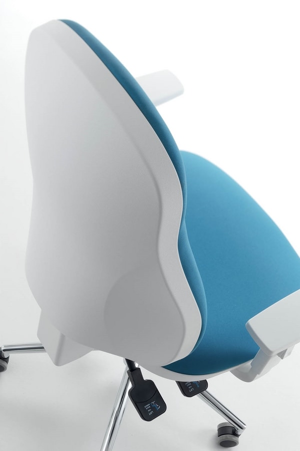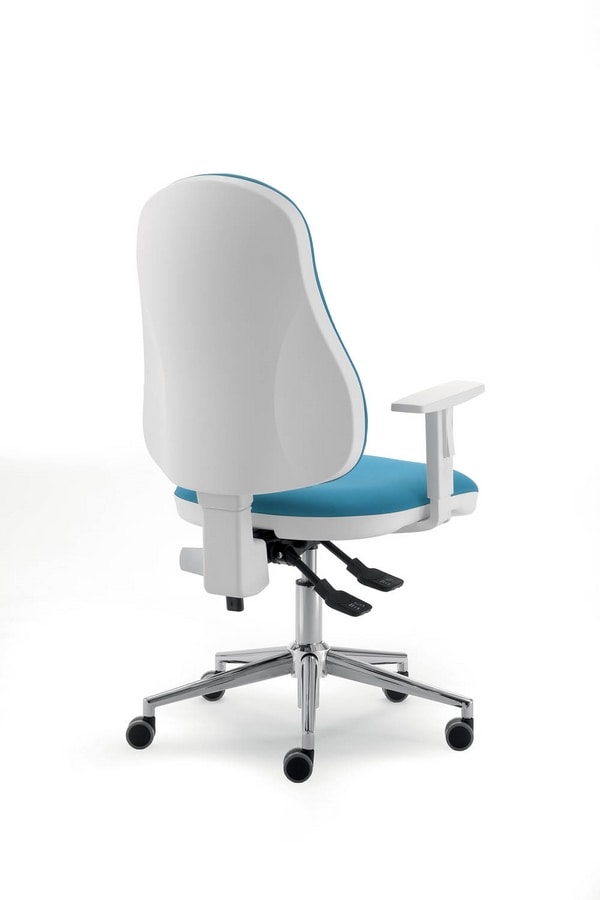Chaise de bureau de travail. Acier chromé, avec roues. Mécanisme d'inclinaison. Options de rembourrage. Disponible avec ou sans bras.