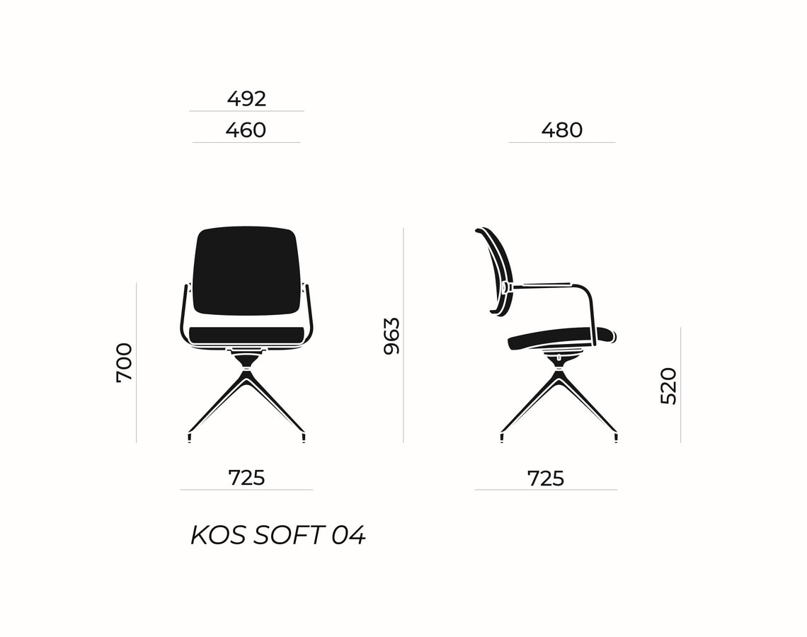 Kos Soft est un fauteuil d'invité complètement rembourré, pour les environnements de travail, les espaces d'attente ou de réunion. Il est proposé en version traîneau, quatre pieds, base fixe pivotante et base à roulettes, avec le dessous de l'assise et l'arrière du dossier noirs ou blancs. La structure est tubulaire chromée ou peinte en noir avec des inserts assortis en plastique.