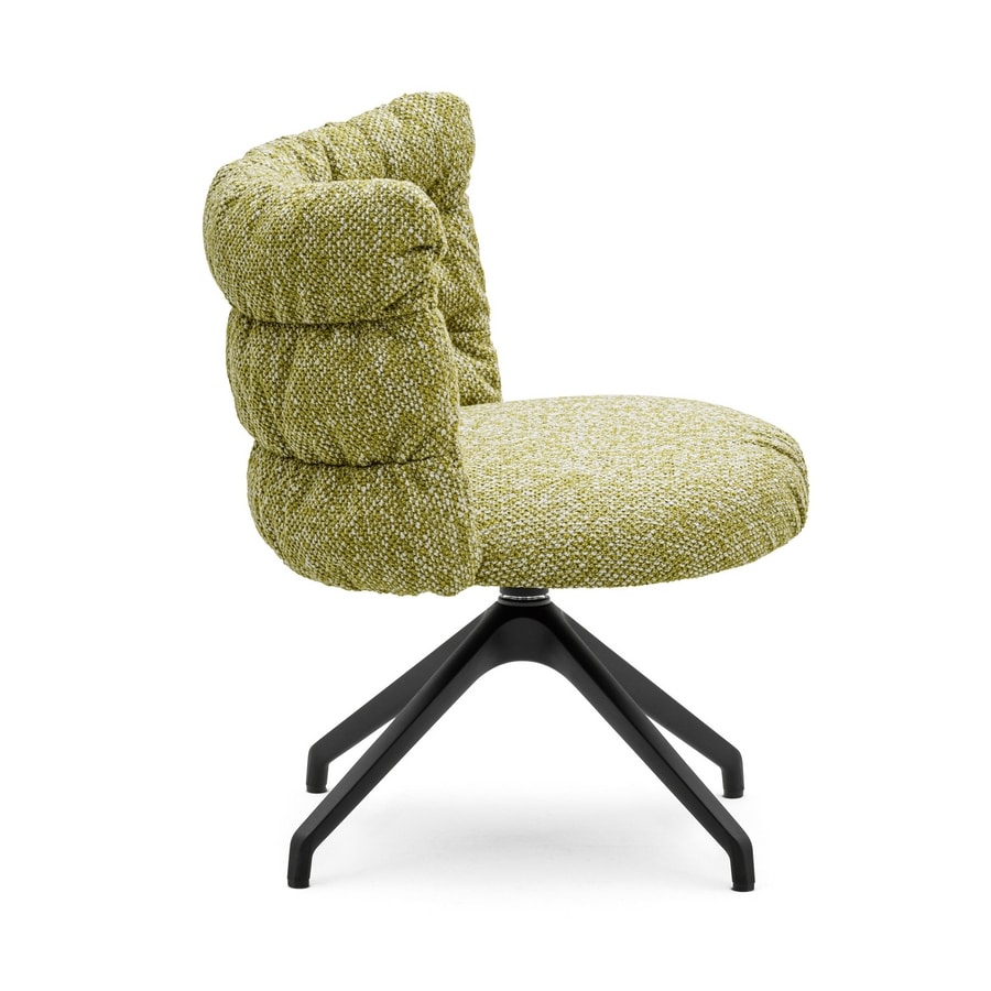 Chaise avec coque en bois de multiplies de hêtre, rembourrée sur la structure, dossier rembourré avec duvet synthétique. Assise rembourrée sur panneau. Piétement pivotant à 4 branches en nylon noir.