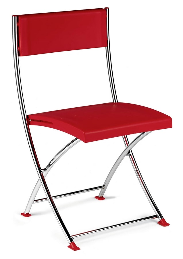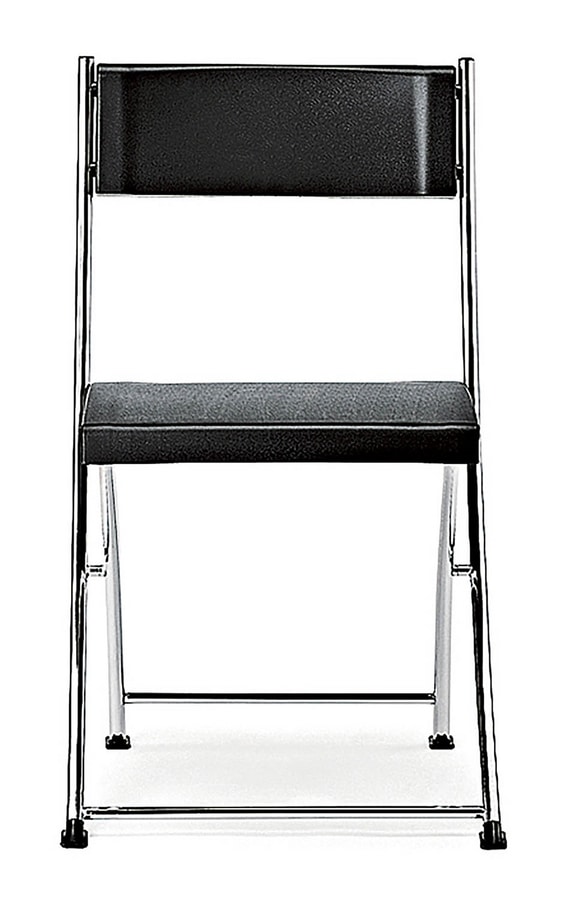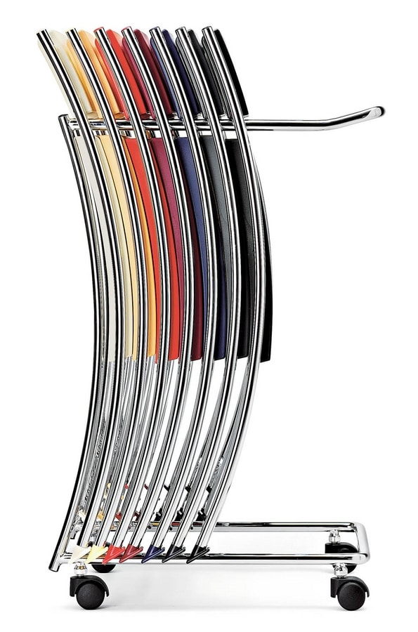 Chaise pliante pour salle d'attente, avec une fine structure en métal chromé. Equipé d'assise et dossier en plastique. Gain de place chaise faite en Italie, pour des réunions et des conférences.