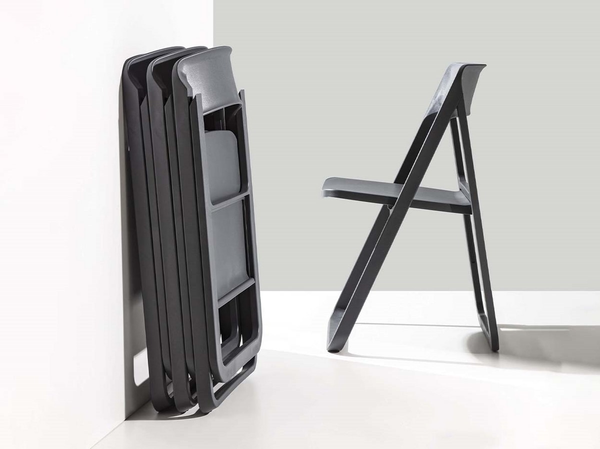 Demander prix Produits similairesChaise pliante avec structure entièrement en polypropylène, disponible dans les couleurs blanc, anthracite, sable et vert. Des crochets muraux et des chariots sont disponibles sur demande.