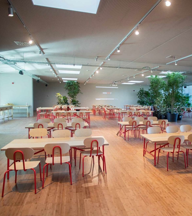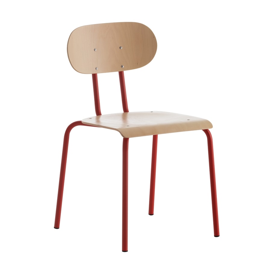 Chaise avec structure en acier peint. Assise et dossier en hêtre de forme anatomique.