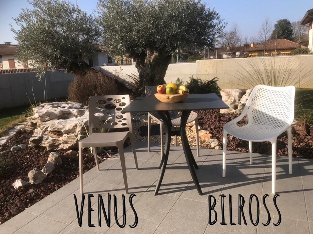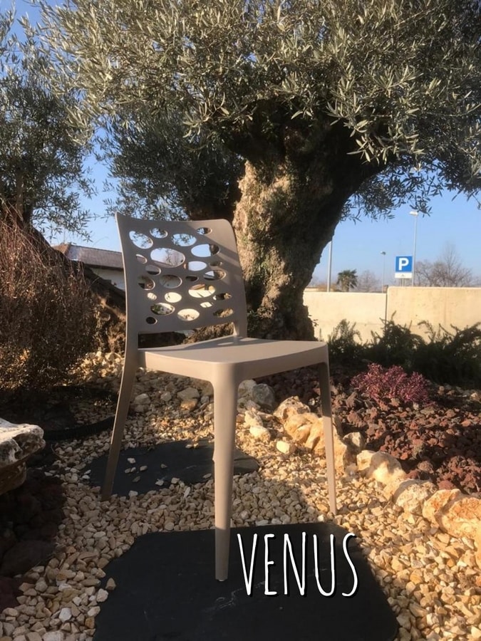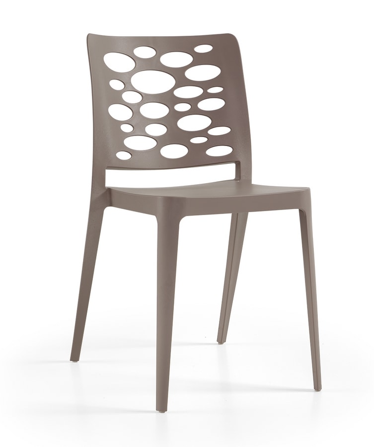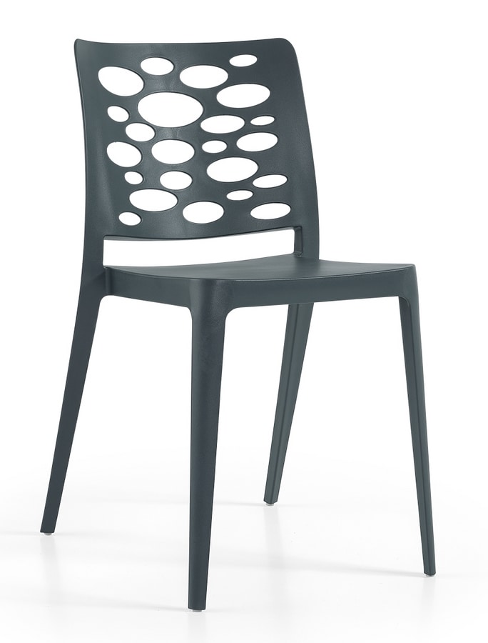 Chaise avec structure en polypropylène recyclable renforcé de fibre de verre. Disponible en différentes couleurs. Empilable et adapté à une utilisation en extérieur.
