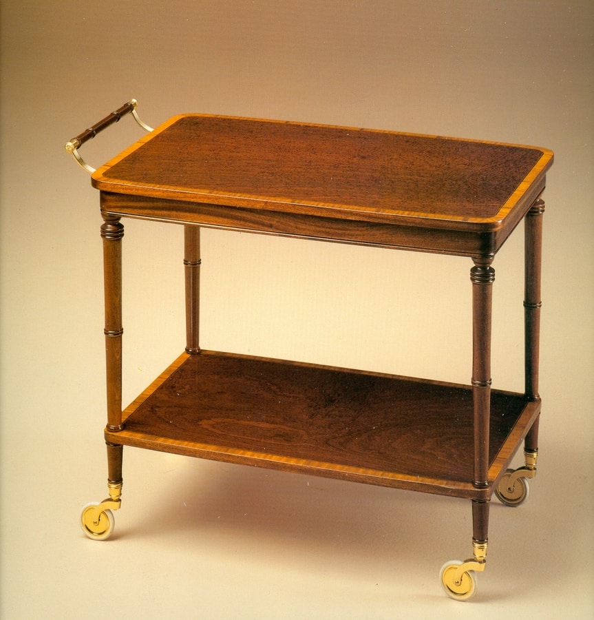 Chariot à thé à roulettes. En bois massif, incrusté à la main dans du bois " Citronnier ".