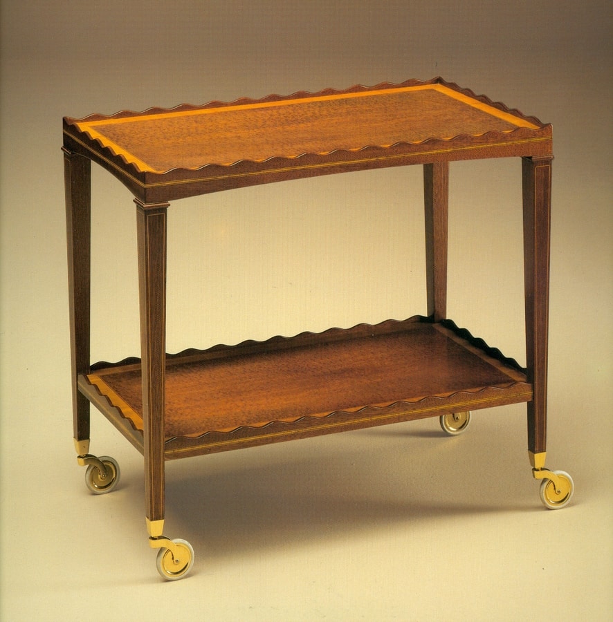 Chariot à thé à roulettes. En bois massif, incrusté à la main dans du bois " Citronnier ".