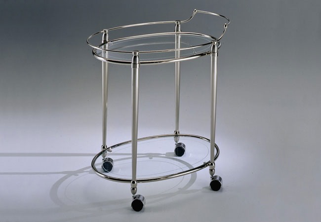 Trolley mat nichel laiton avec des pièces en laiton poli nichel. verres transparents avec la gravure.