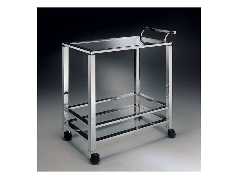 Table roulante en laiton chromé, verres transparents. Adapté aux environnements avec des lignes classiques.