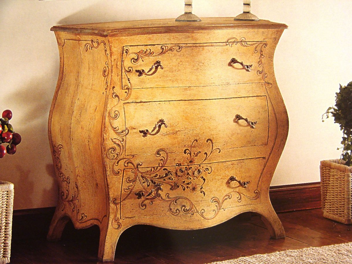 Commode peint et patiné décorations antiques.