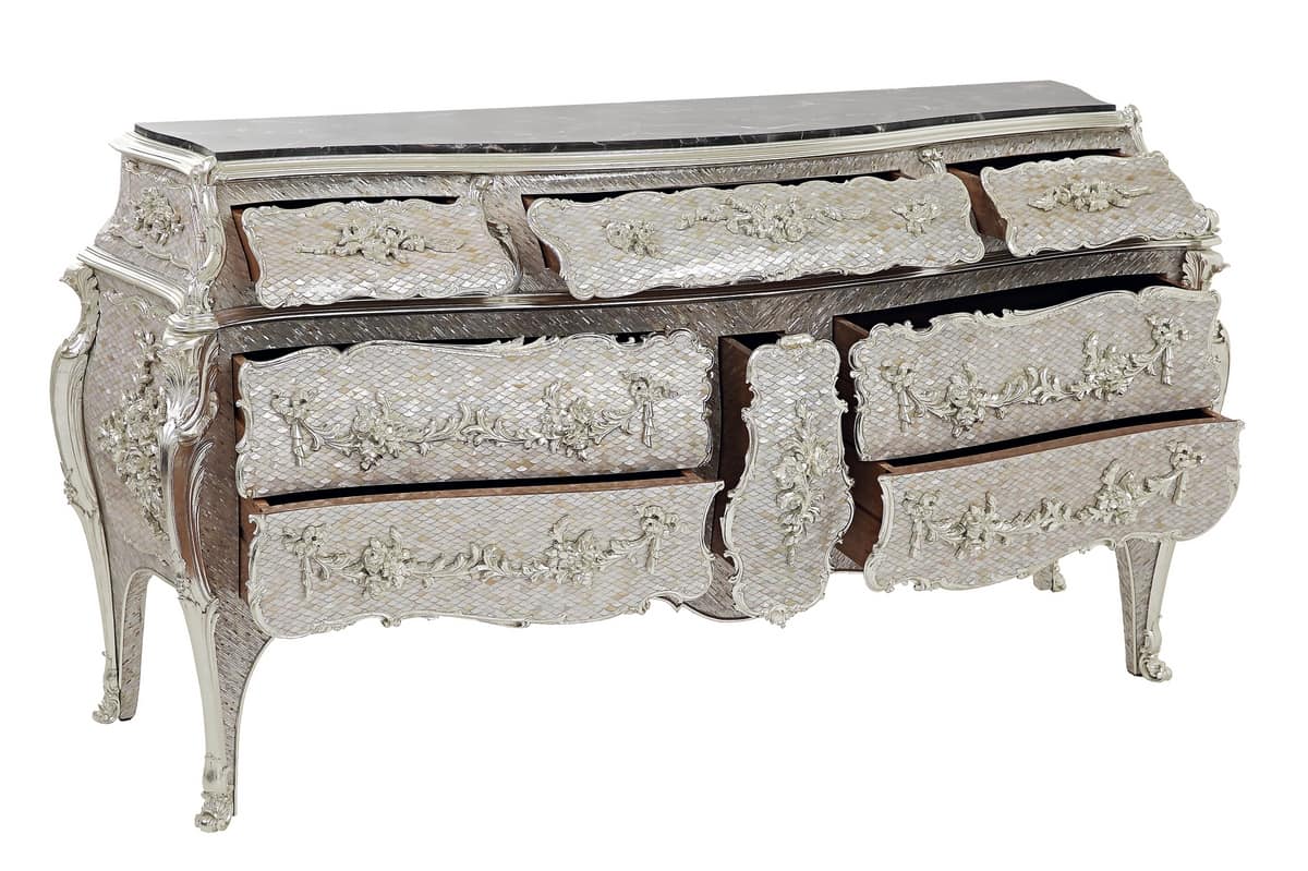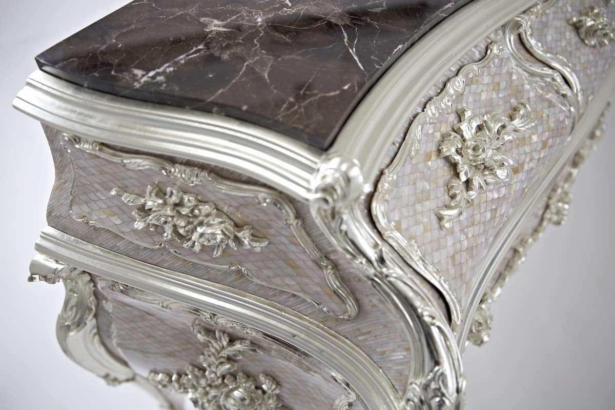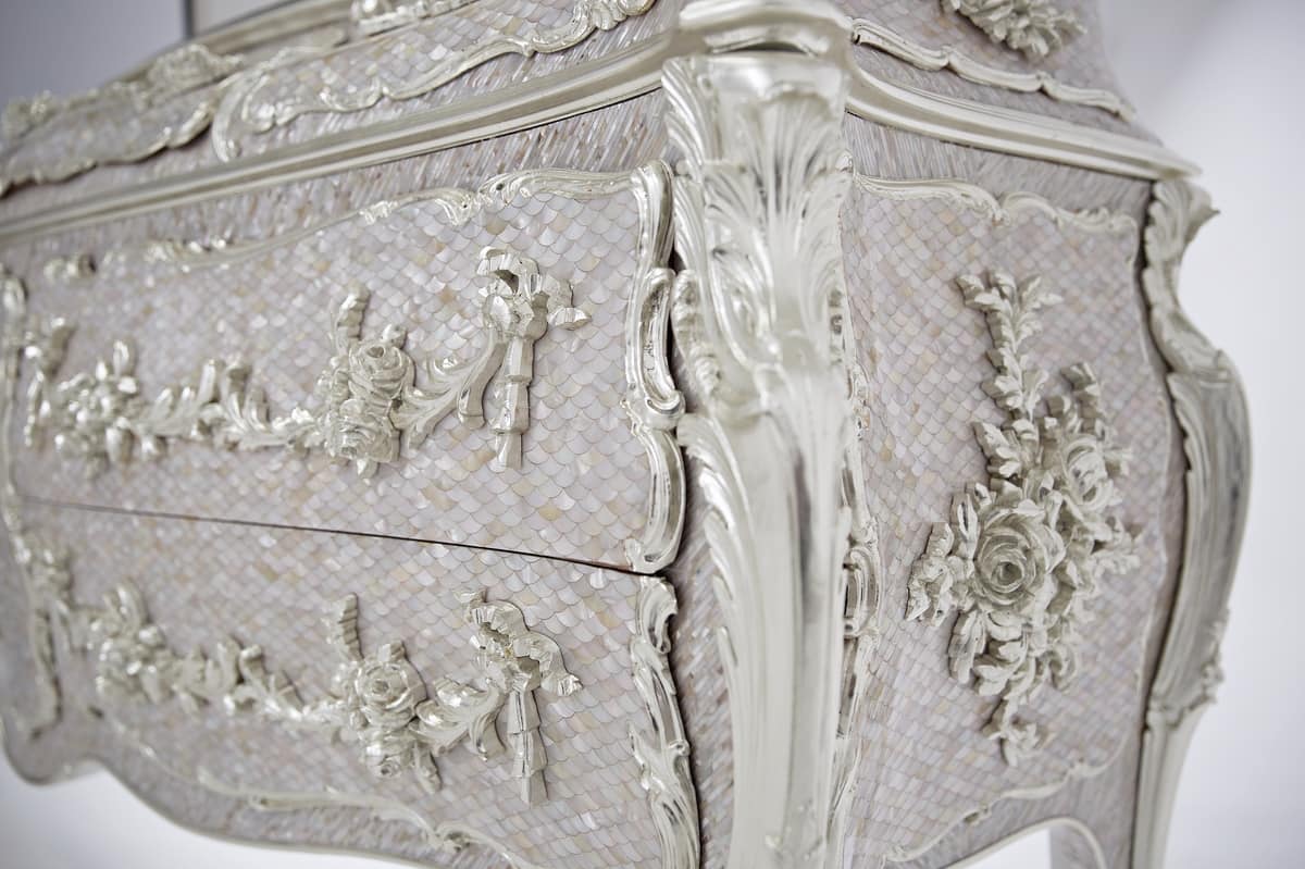 Commode avec des incrustations en or blanc pur