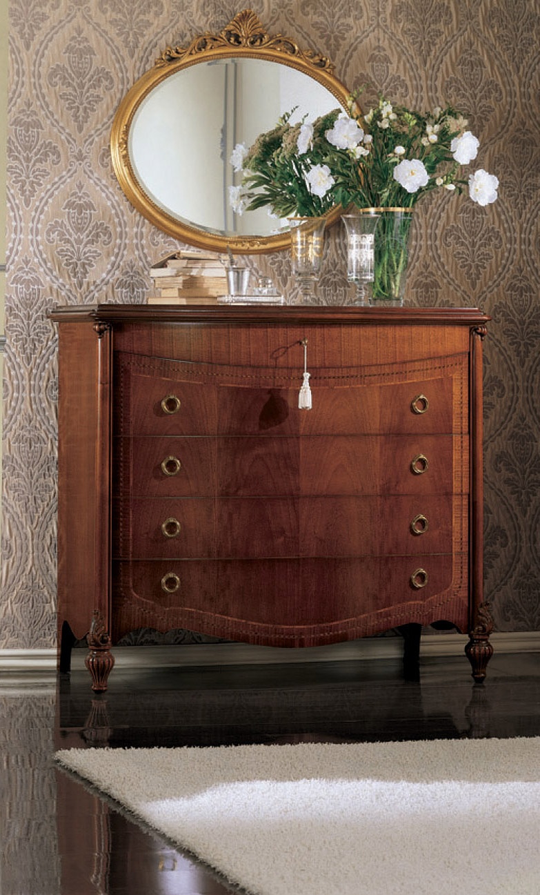 Mimosa est une collection avec des lignes typiquement sévères, à la fois formelle et imposante. Sa pratique est renforcée par la polyvalence de la commode avec porte ou tiroirs rabat, et les détails exquis exécutés comme les poignées en forme d'anneau qui sont communs à tous les éléments. Mimosa est faite de bois massif et noyer boucle, avec des fronts courbés, décoré avec des incrustations et sculpture et tops embelli avec des incrustations de cordage. La valeur de la collection réside non seulement dans sa polyvalence, mais dans son classicisme conscient, inspiré par la collection de meubles du 19ème siècle et le charme intemporel de la noix. Derrière la trappe de la commode il y a un secretaire très pratique avec de petits tiroirs et unités ouvertes. L'intérieur des tiroirs sont recouverts de tissu. Le mobilier est poli avec la gomme laque et la cire. La collection Mimosa est le fruit de la recherche dans des styles anciens par studio Boga.