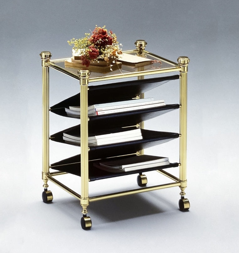 Porte-revues avec des roues, en laiton poli, pour la maison