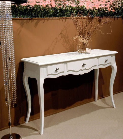 Accent console pour les salles de la maison et salons. Console en bois avec la finition blanche en détresse.