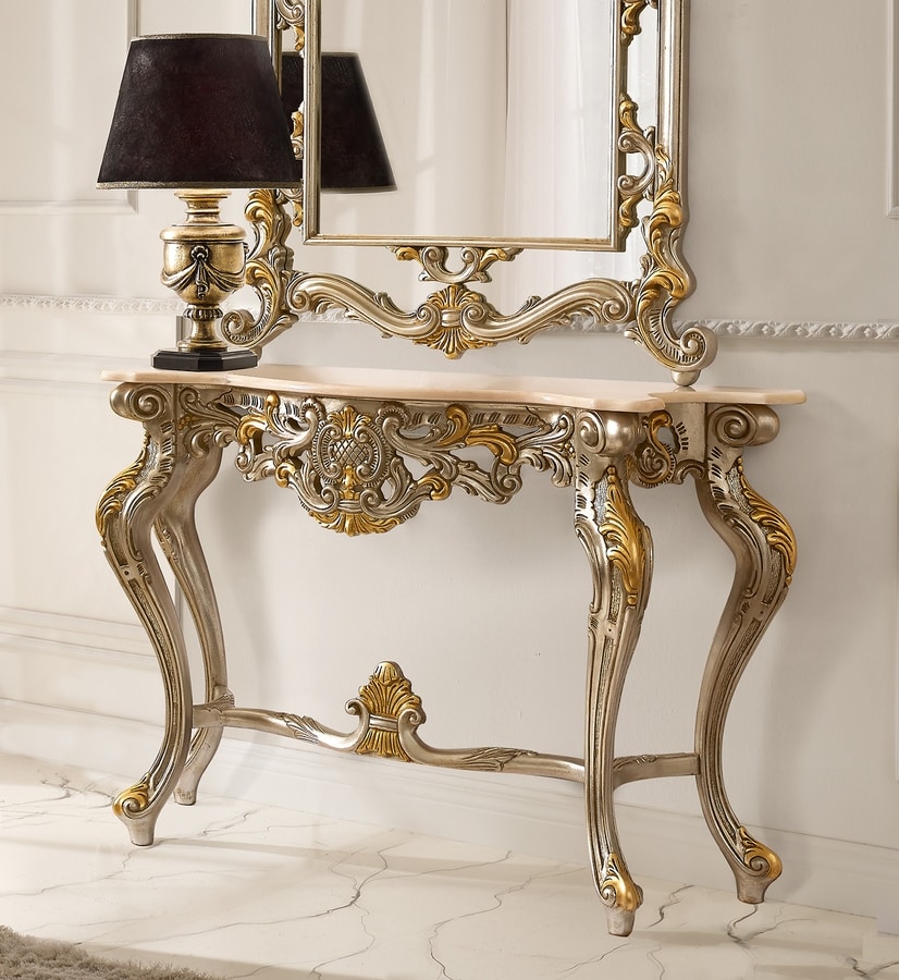 Console sculptée avec dessus en marbre portugais.