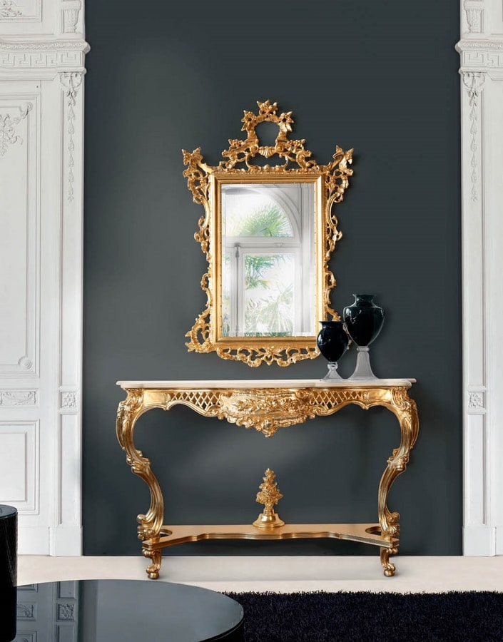 Console sculptée, avec plateau en marbre jaune atalantide.