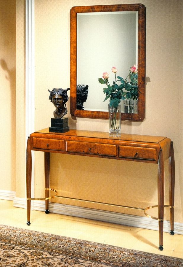 Console avec 3 tiroirs; structure en loupe d'olive et zebrano.